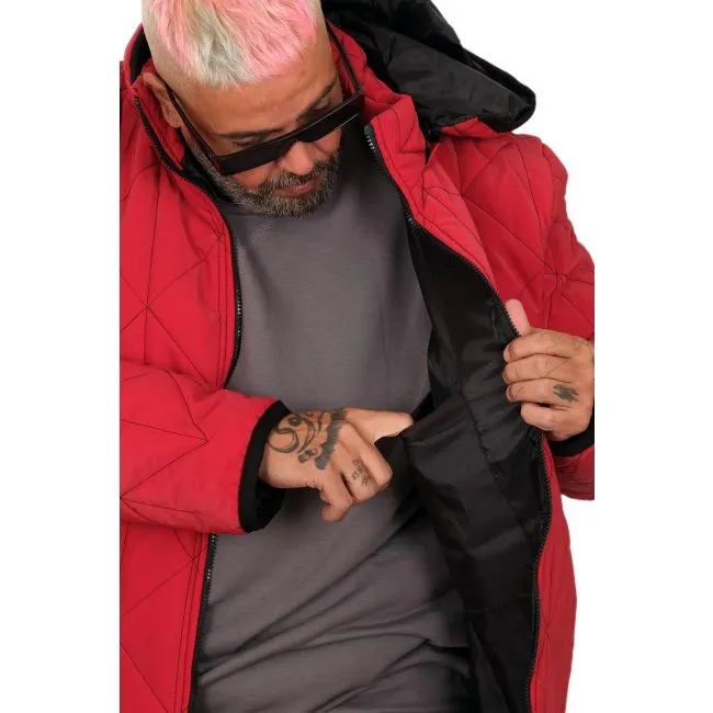 Plus Size Mens Winter Coat BURGUNDY 100% Poly Model Measurements: 173cm / 140kg Beden: 5XL