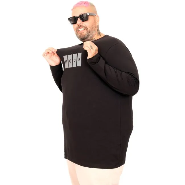 Plus Size Mens Long Sleeve Tshirt BLACK %95 Cotton %5 Lycra Model Measurements: 173cm / 140kg Beden: 166