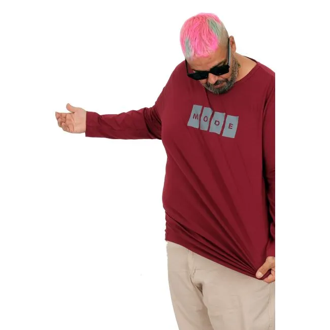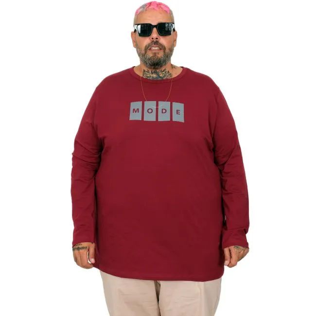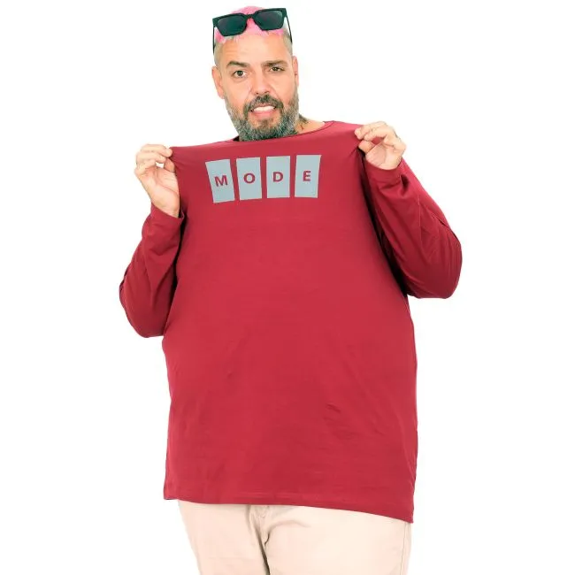 Plus Size Mens Long Sleeve Tshirt BURGUNDY %95 Cotton %5 Lycra Model Measurements: 173cm / 140kg Beden: 161