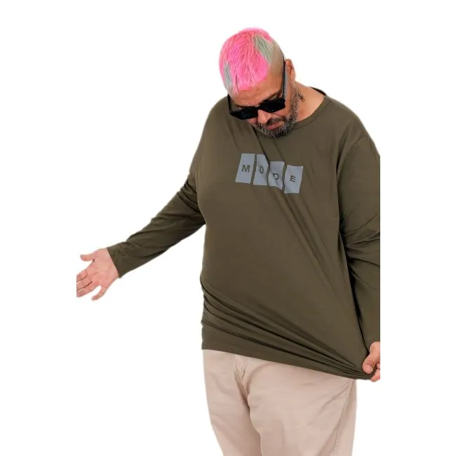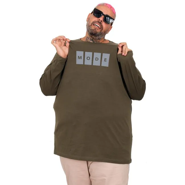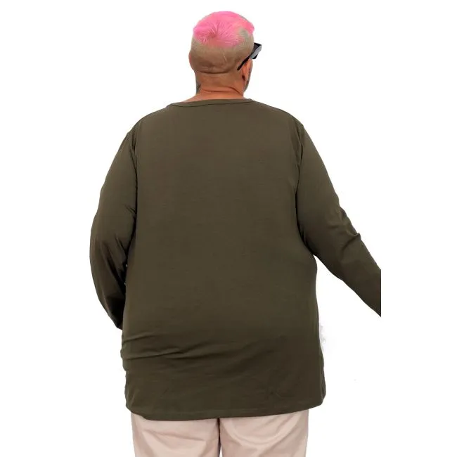 Plus Size Mens Long Sleeve Tshirt KHAKI %95 Cotton %5 Lycra Model Measurements: 173cm / 140kg Beden: 151