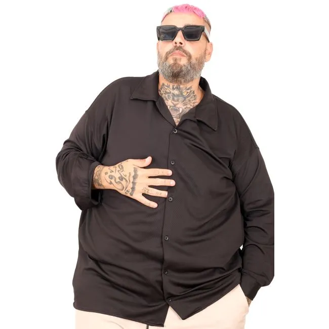 Büyük Beden Erkek Gomlek Apas 11107 SIYAH SIYAH %65 Pamuk %30 Poly %5 Likra Manken Ölçüleri: 173cm / 140kg Beden: 5XL