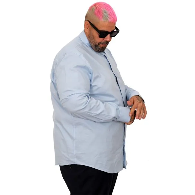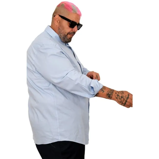 Big-Tall Mens Classic Long Sleeve Shirt With Lycra Washed after the production, does not shrink. Being washed eliminates shrinkage and discolouration problems. A modern shirt that will make you look even more elegant. 97% Cotton 3% Spandex Cotton is antiperspirant, spandex makes you feel more comfortable. Colour:Blue Models Measurements: Height: 184 cm Weight:120 kg Size: 4XL