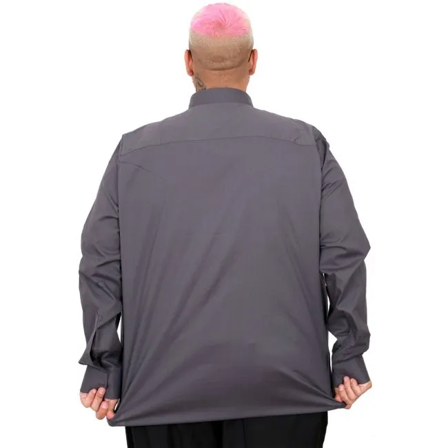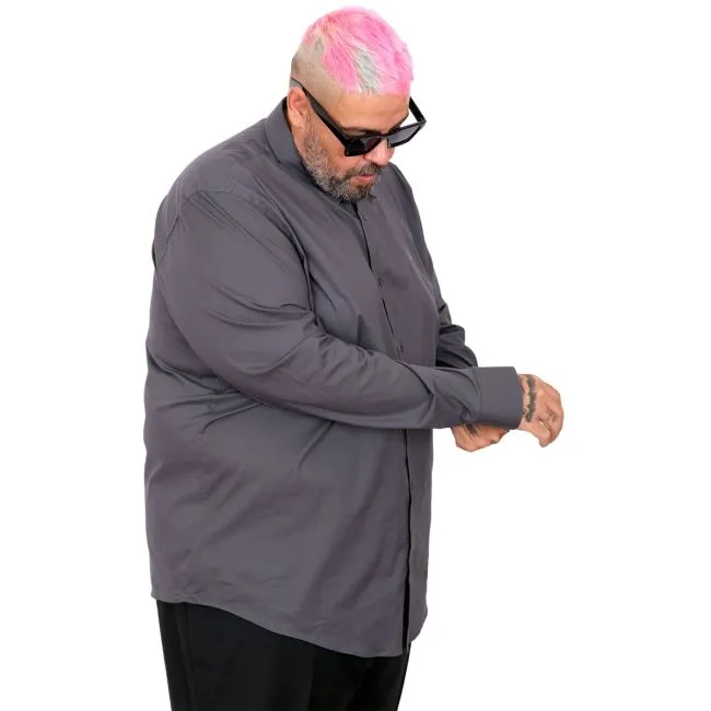Big-Tall Mens Classic Long Sleeve Shirt With Lycra Washed after the production, does not shrink. Being washed eliminates shrinkage and discolouration problems. A modern shirt that will make you look even more elegant. 97% Cotton 3% Spandex Cotton is antiperspirant, spandex makes you feel more comfortable. Colour:Smoke Models Measurements: Height: 184 cm Weight:120 kg Size: 4XL