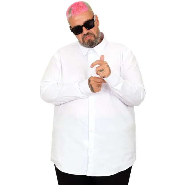 Big-Tall Men's Classic Shirt With Pocket and Lycra 20350 White
