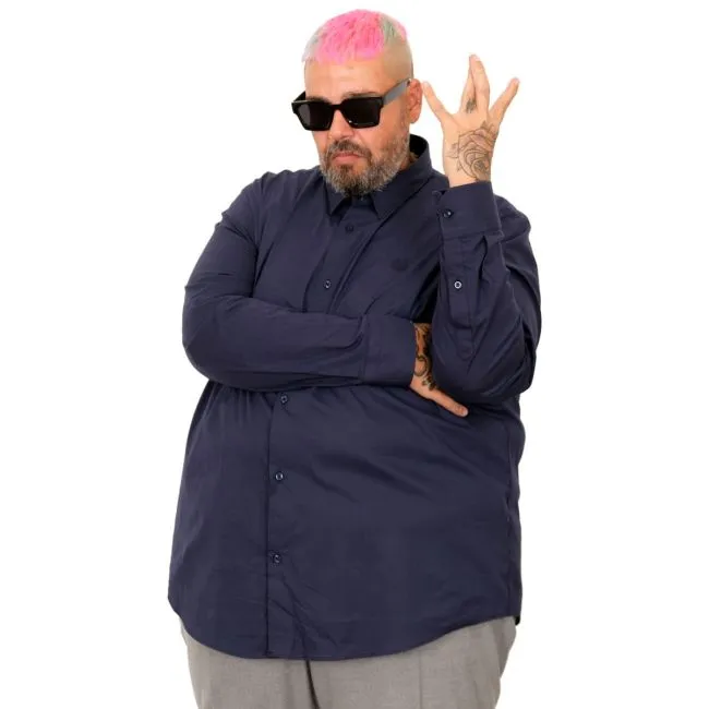Big-Tall Men's Classic Shirt With Lycra 20351 Navy Blue