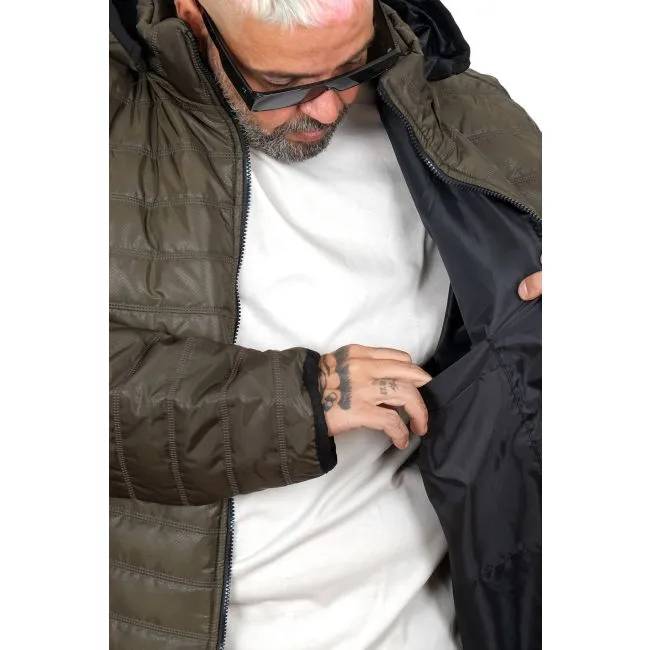 Battal Beden Erkek Mont Kapitone 25708 HAKI %100 Polyester Manken Ölçüleri: 173cm / 140kg Beden: 5XL