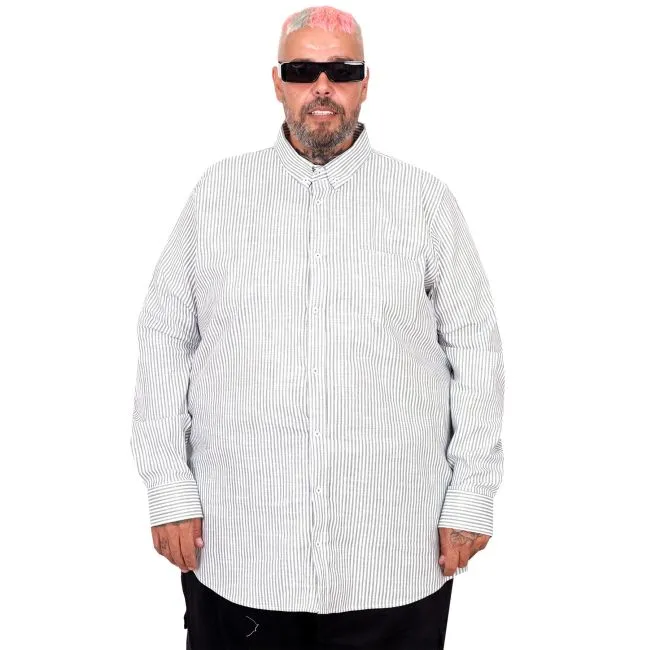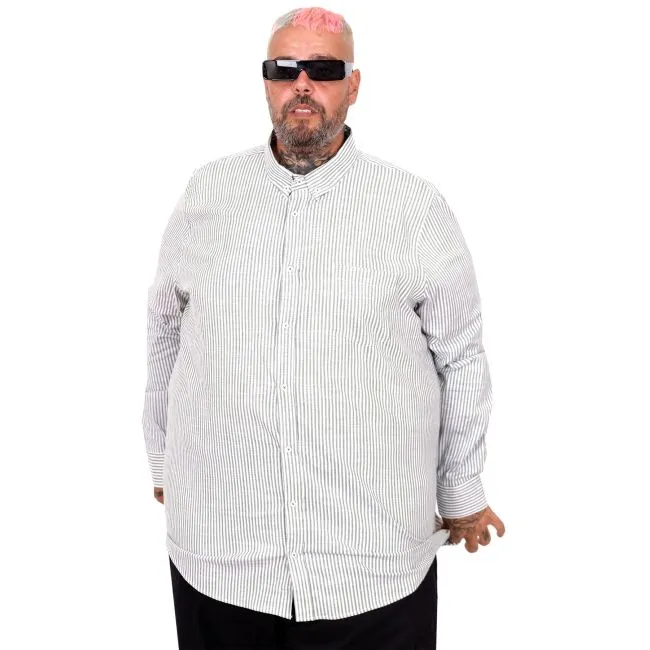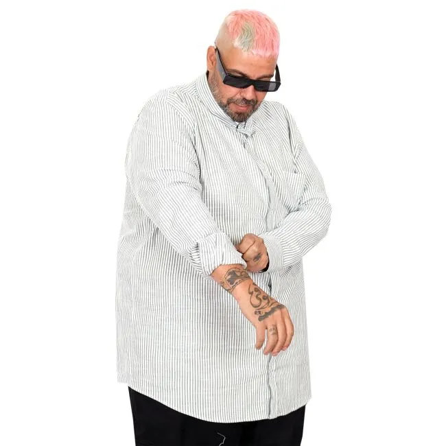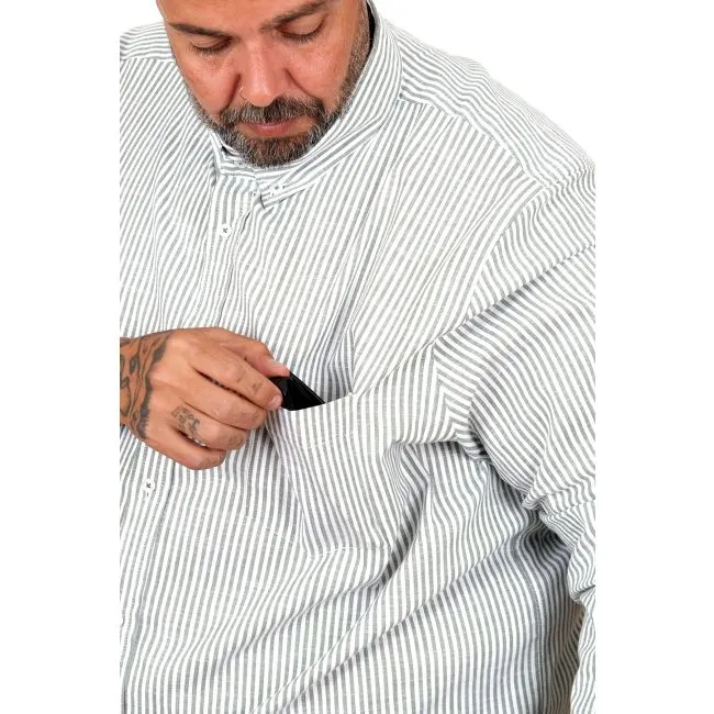 Battal Erkek Keten Çizgili Gömlek 20384 HAKI %95 Pamuk %5 Lycra Manken Ölçüleri: 173cm / 140kg Beden: 5XL