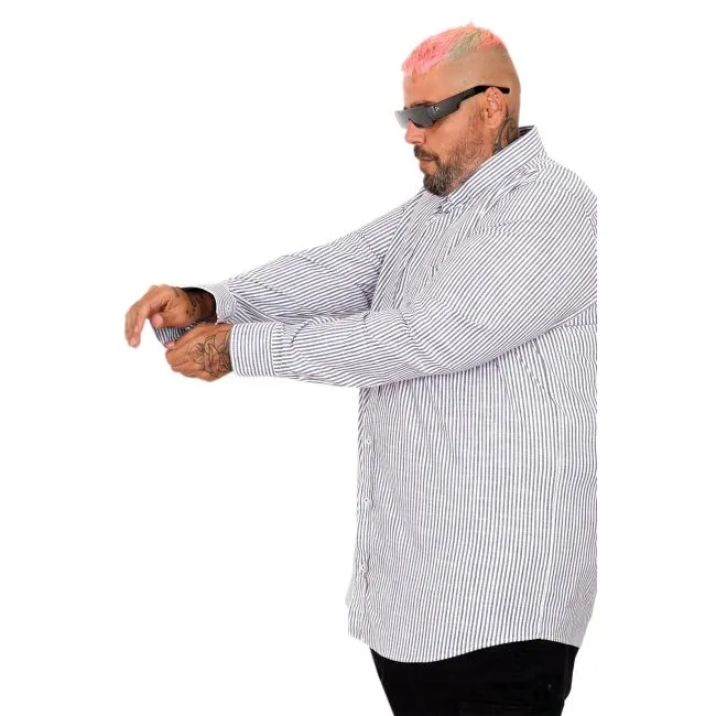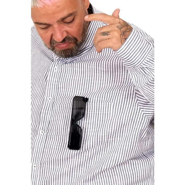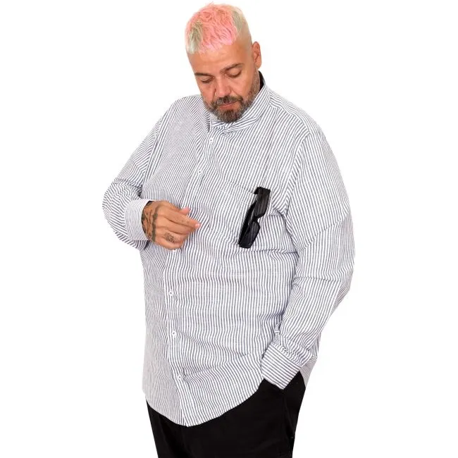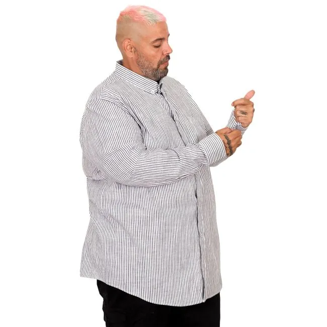 Battal Erkek Keten Çizgili Gömlek 20384 SIYAH %95 Pamuk %5 Lycra Manken Ölçüleri: 173cm / 140kg Beden: 5XL