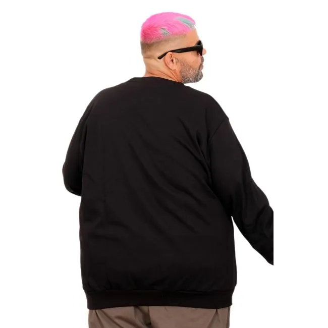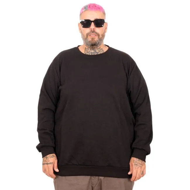 Büyük Beden Erkek Bisiklet Yaka Sweatshirt Basic U22465 Siyah