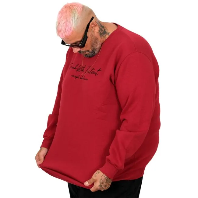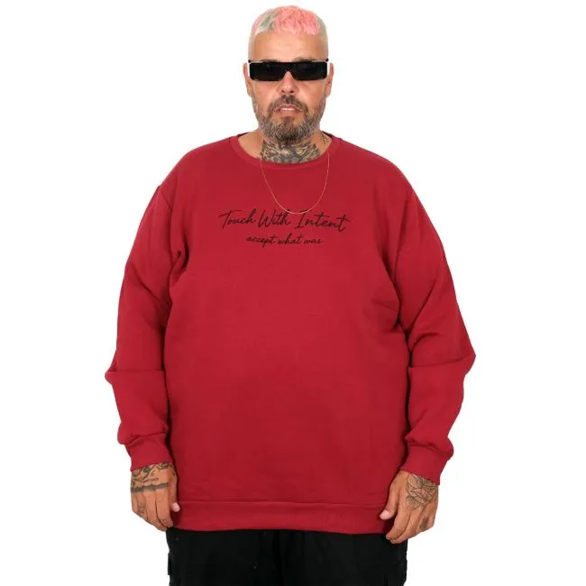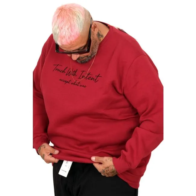 Büyük Beden Erkek Bisiklet Yaka Sweatshirt TOUCH WITH INTENT U25804 Bordo