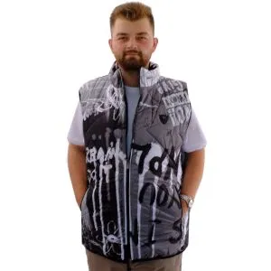 Büyük Beden Erkek Dik Yaka Kapitone Yelek U24706 Siyah-Beyaz