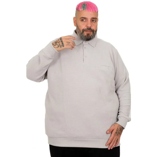 Büyük Beden Erkek Polo Waffle Kazak U25821 GRİ GRİ %50 Pamuk %50 Poly Manken Ölçüleri: 173cm / 140kg Beden: 5XL