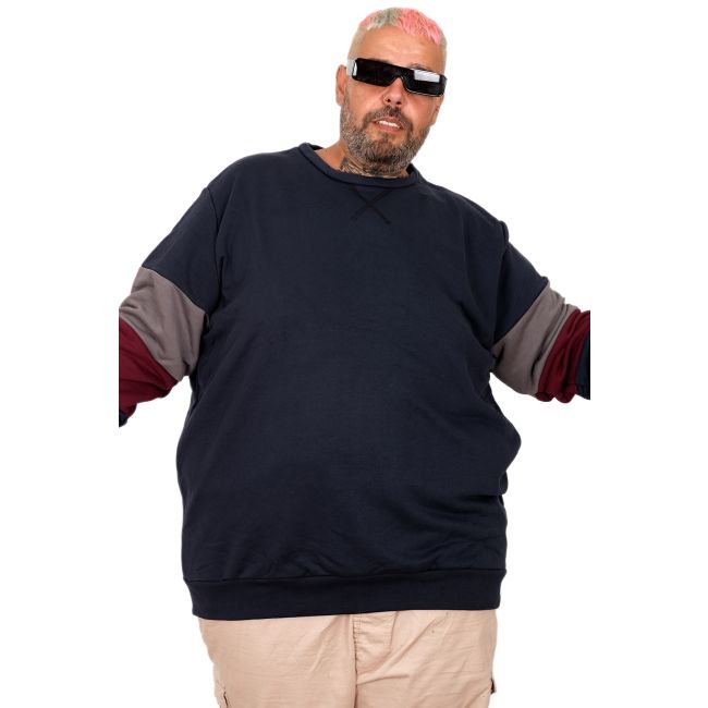 Büyük Beden Parçalı Bis Yaka Sweatshirt U25817 LACIVERT %65 Pamuk %35 Polyester Manken Ölçüleri: 173cm / 140kg Beden: 5XL