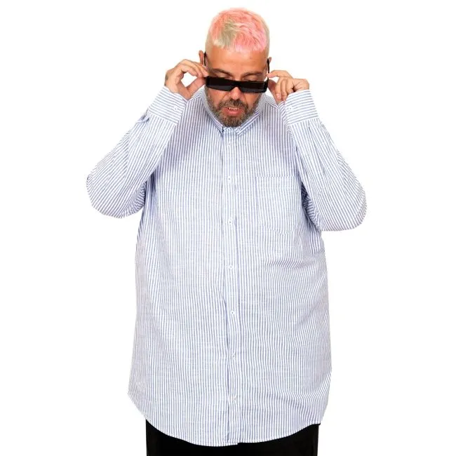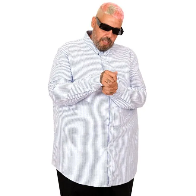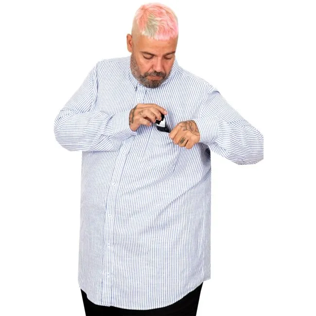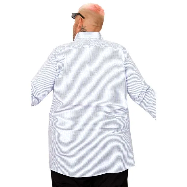 Battal Erkek Keten Çizgili Gömlek 20384 MAVI %95 Pamuk %5 Lycra Manken Ölçüleri: 173cm / 140kg Beden: 5XL
