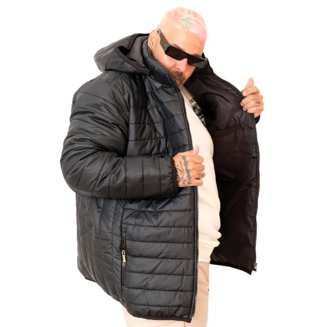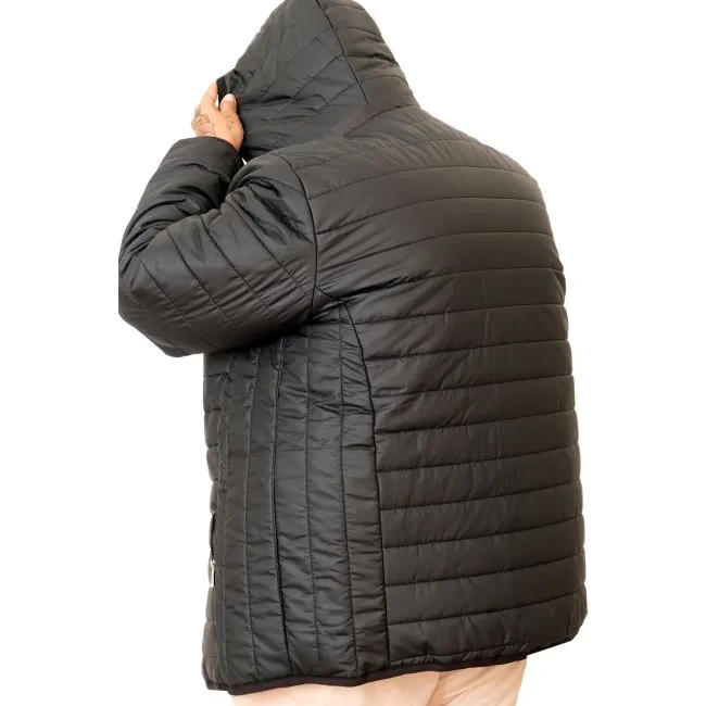 Erkek Büyük Beden Mont Kapşonlu U25702 SIYAH DERI %100 Polyester Manken Ölçüleri: 173cm / 140kg Beden: 5XL