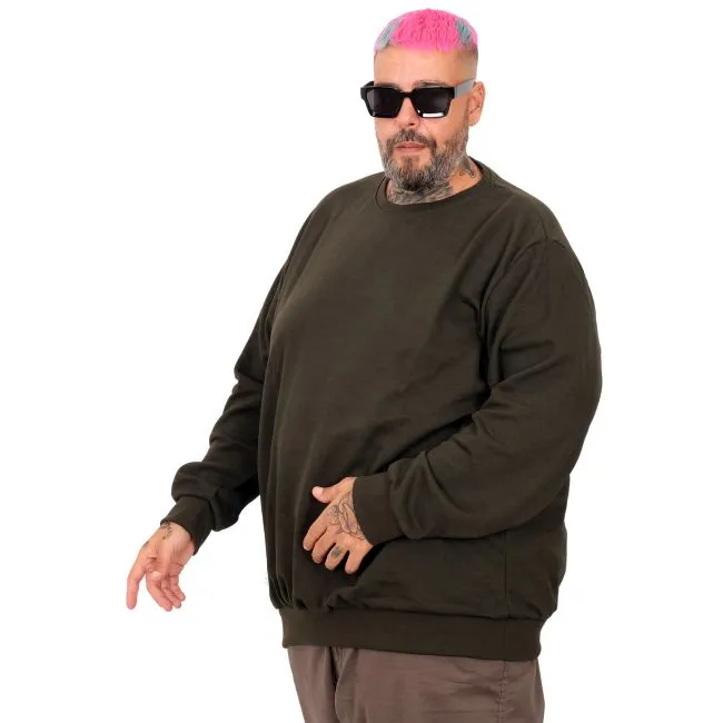 Erkek Interlok Sweat Bıs.Yaka Basıc U22465 HAKİ %100 Pamuk Manken Ölçüleri: 173cm / 140kg Beden: 5XL
