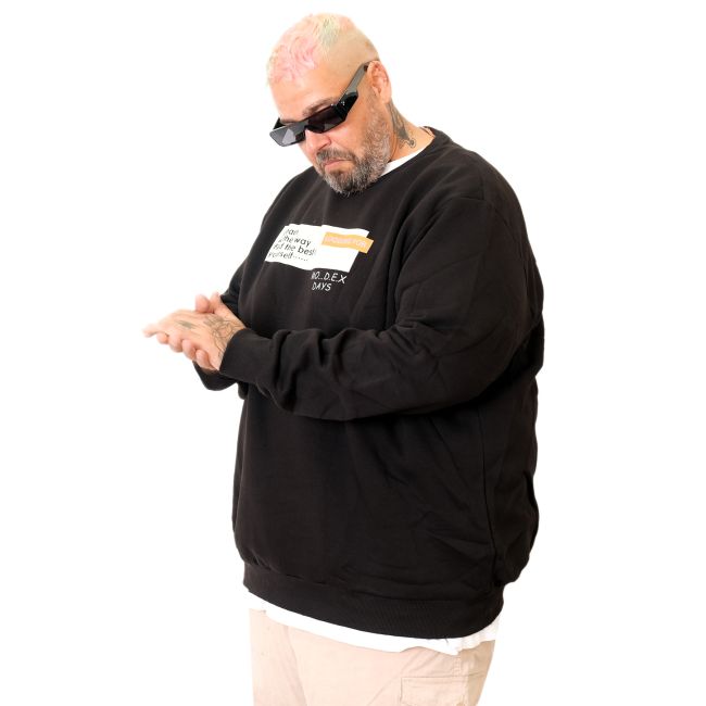 Erkek Sweat Bisiklet MO...D.E.X DAYS U25801 SIYAH %65 Pamuk %35 Polyester Manken Ölçüleri: 173cm / 140kg Beden: 5XL